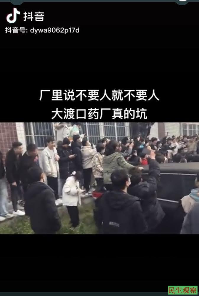 有工友在抖音上称,厂里说不要人就不要人,大渡口药厂真的坑。该厂领导被打时,工友评价领导,素质非常低!