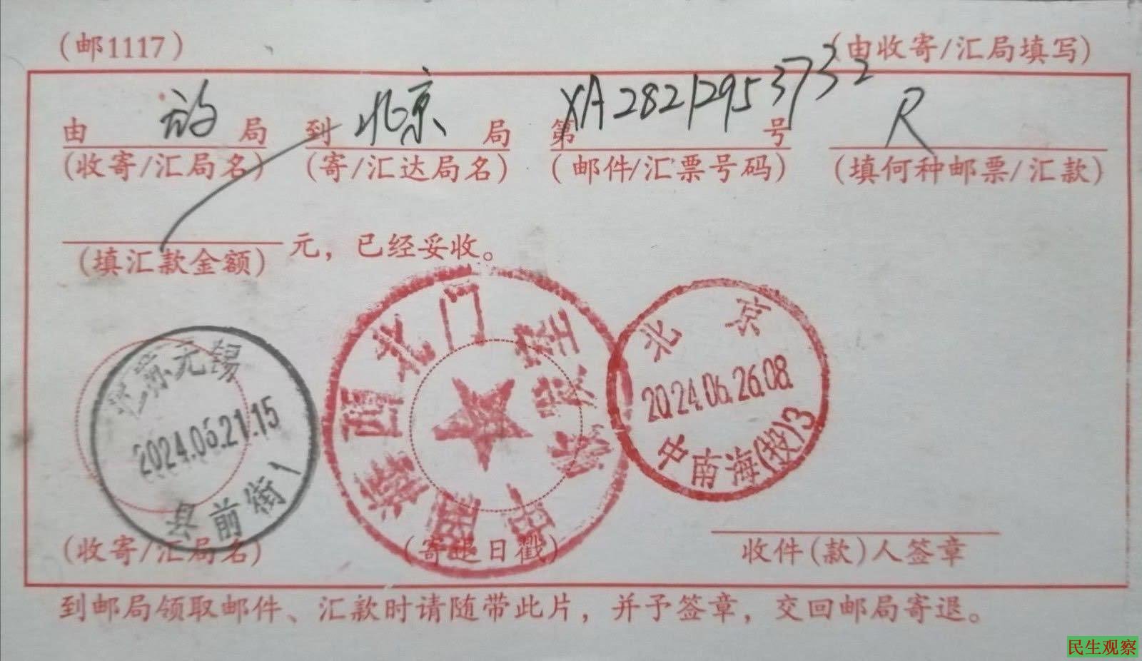 朱正明之前也有13次向公安部的上级单位信访反映也是无任何答复,邮局确认信件接收,21份信件的单位均已签收,但标榜“事事有回应,件件有着落”的各个部门都没有任何回音。