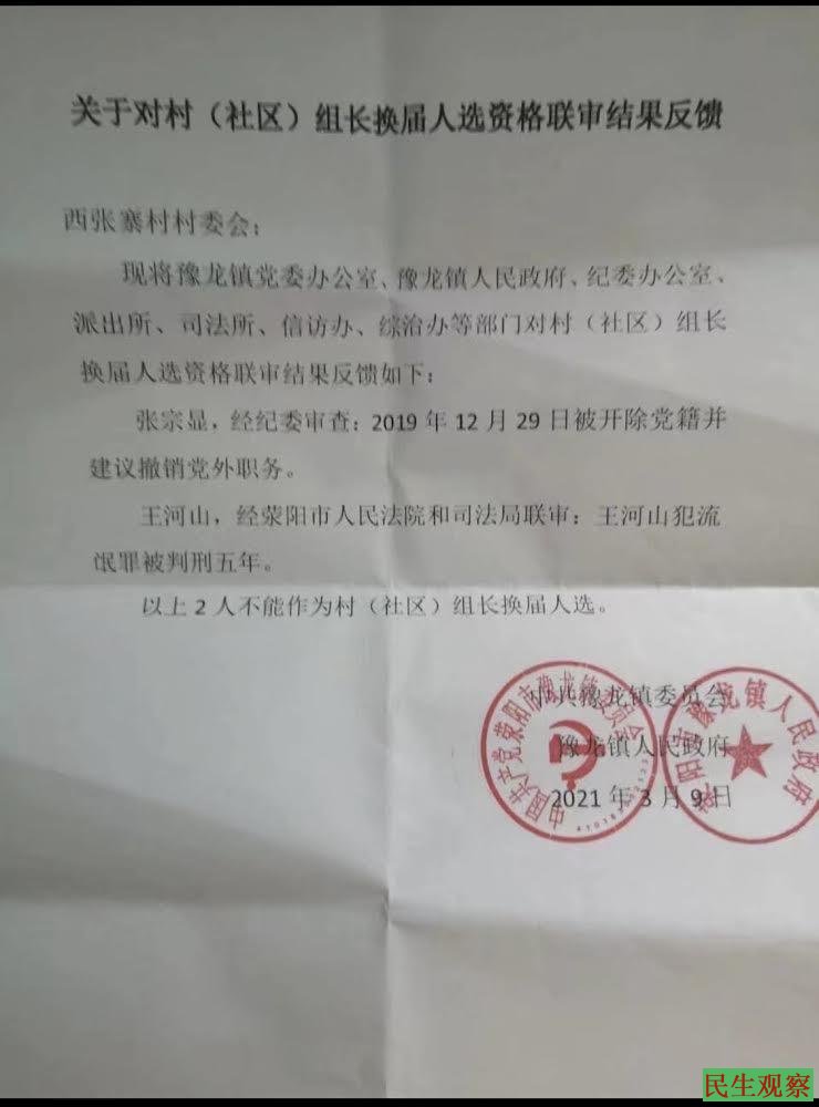 据悉,2021年西张寨村换届选举,村委会只有陈培豪一名党员当选;监委会无一名党员当选;小组长选举除了一名越战老兵党员当选外,村民没有把选票投给其他党员;村民代表选举就更牛了,其他党员一个也没有当选。