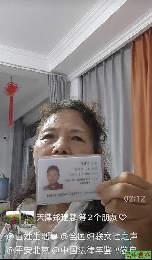 丁国民表示,自己没事从不出门,在家呆着都能招来灾祸,她恳请全国妇联、北京上级公安及政府部门领导们给她做主,主持公道维护自己的合法权益。