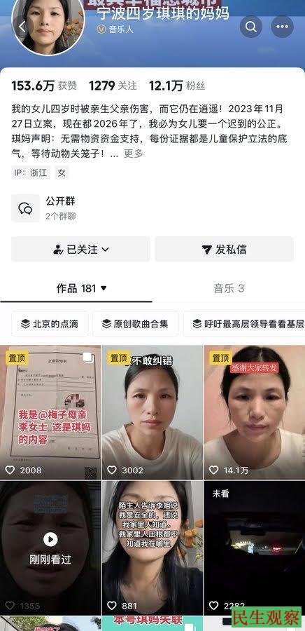 2023年12月起,“宁海四岁琪琪的妈妈”开始在抖音平台发布作品,目的是通过网络平台维权。