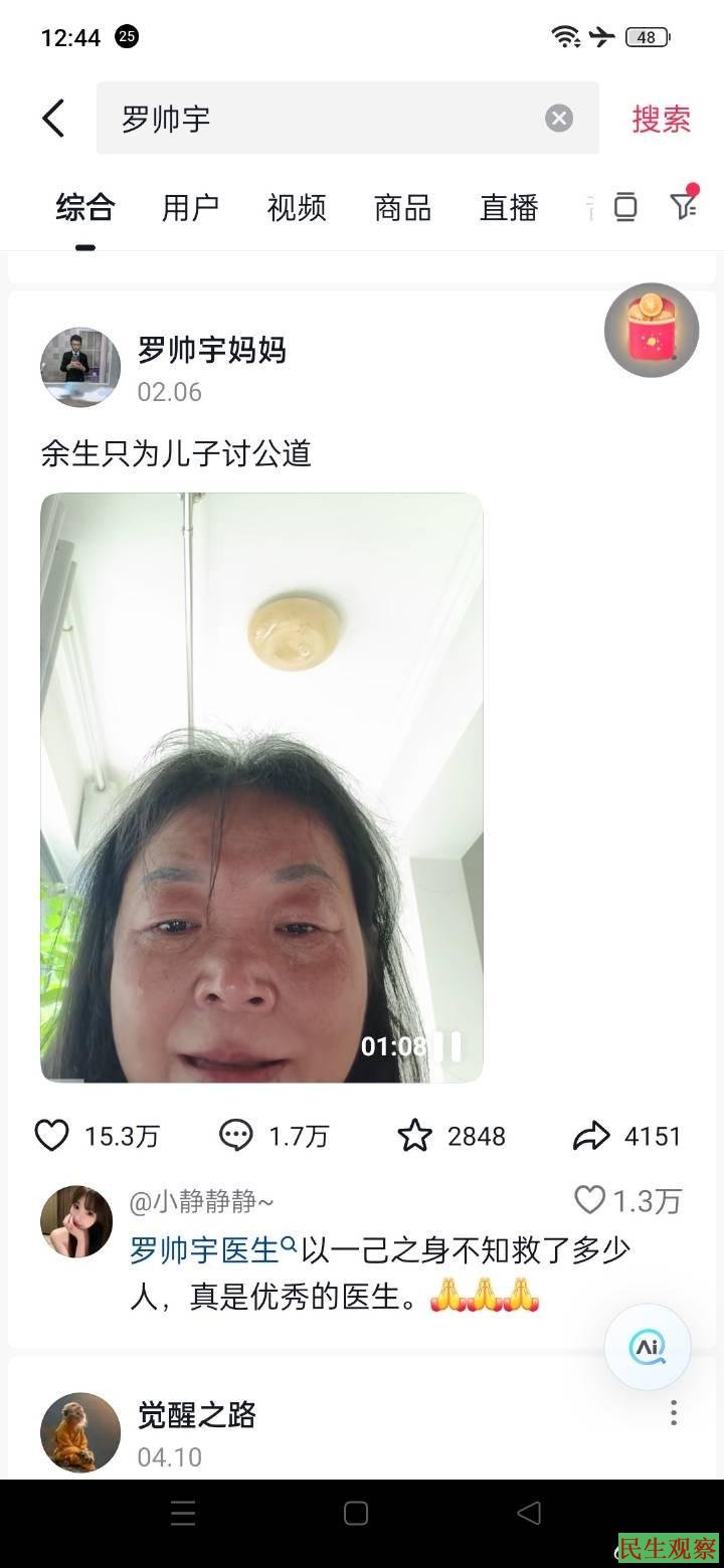 家属维权与社会声援:罗帅宇父母持续在社交媒体发声,并携带举报材料寻求上级部门调查,但事件长期未获官方立案。其母在2025年5月(事件一周年)公开表示曾向巡视组反映情况,引发短暂关注。部分网民及大V账号(如@我的队友四条狗丶RE)指出,罗帅宇可能因举报黑幕遭报复,呼吁公众关注医疗系统腐败问题。