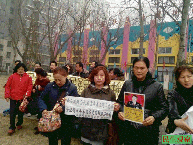 民生观察工作室2014-2-28消息 :随着今年全国两会的临近,武汉许多访民近日纷纷来到北京,希望借此机会讨个说法。已到北京的武汉访民有:邹桂兰、李玉琴、汤素芳等人。她们到京后,连日在北京南站等地以打标语等多种方式陈情申冤。