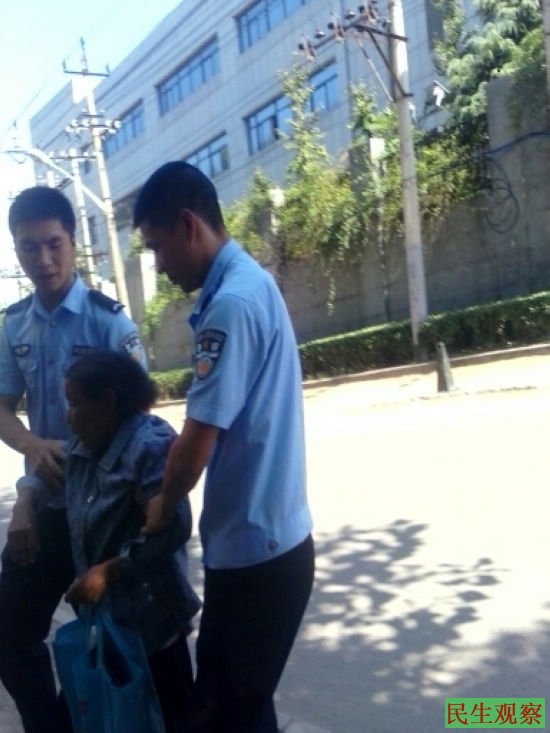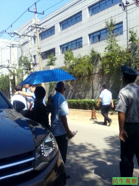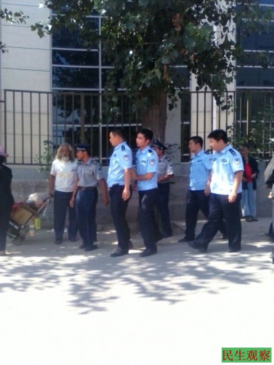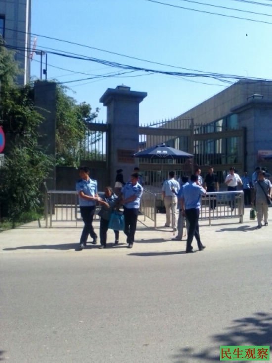 民生观察工作室2014-9-4消息:今天最高法门前的法警不时驱赶站在高法对面路边的访民,有的访民被掐着脖子推走,有的则被拉扯,还高声喊喝,不许拍照。河北曲阳的一老太被高法的法警从大院里架了出来,又回到门口摆地状,又被法警给架到了路边,到11点时好多访民从高法出来。