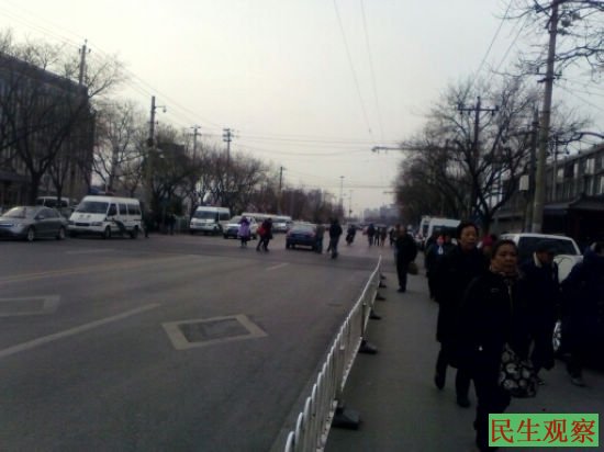 让人感到意外的是,警方今天显得有些异常,国家信访局门外的马路上只有10几辆警车,失去了以往的“繁华”景象。