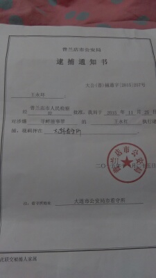 当地政府将其带回后把她交给普兰店市公安局处理,随后与10月27日王永红被普兰店市公安局以涉嫌寻衅滋事罪刑事拘留。今天王永红的姐姐发来消息,王永红11月25日被检察院批准逮捕,现关押在大连市看守所。