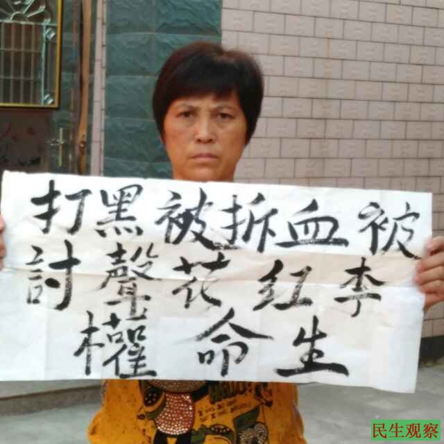 据悉,李红花是因为2008年5千平米的养殖厂遭遇强拆,她和母亲制止强拆时被镇干部唐绍平和强拆人员打伤而上访,从2009年维权到现在因上访被打伤6次,被软禁、拘留17次,劳教l年零9个月。