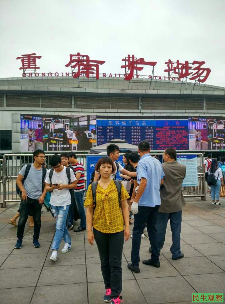 【民生观察2018年6月5日消息】本网获悉,重庆渝北区龙山街道十社维权人士肖建芳,昨天在重庆北站欲乘坐火车前往济南旅游,在火车站遭到重庆维稳人员的非法拦截和殴打。