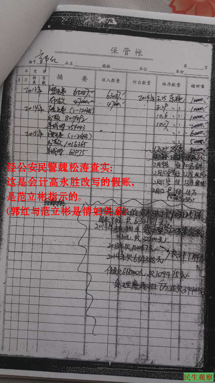 而公司自2012年至2015年2月的全部账薄都被范立彬、会计高永胜隐匿、毁坏,并更改伪造。公安局办案民警魏松涛组织徐双喜、姜东艳、姜述平、还有协警一名与范立彬在公安局经侦队对质,民警姜洪远在现场录音录相。对质时范立彬嚣张的大声喊,账薄全部被他烧毁了,你们能把我怎样?这句话在公安局14楼上说了六七遍,事实证明范立彬等人有故意损毁账本的行为,但公安局并未对此采取行动。