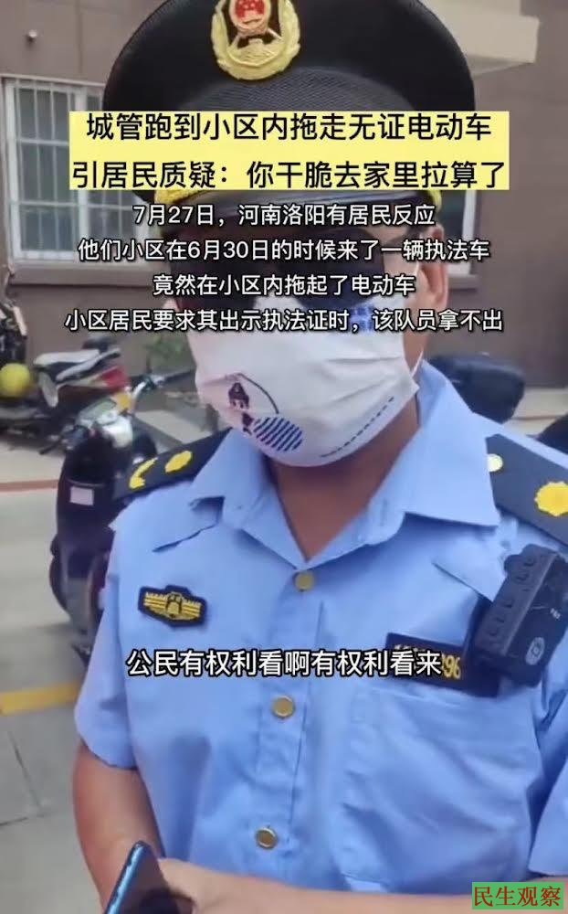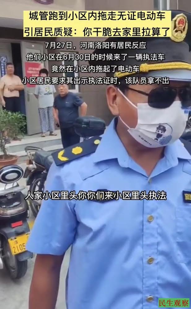 河南洛阳城管进小区强收居民电动车 |