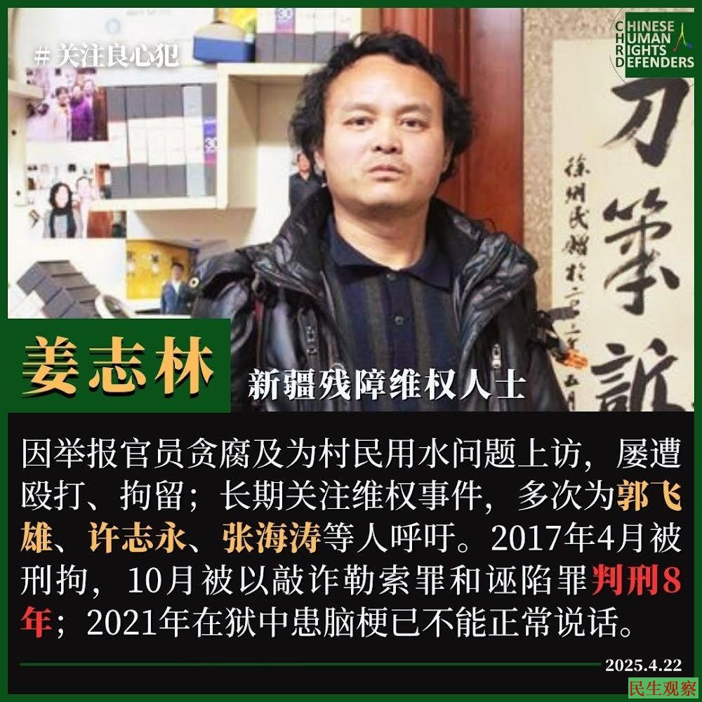 新疆公民姜志林现状堪忧 |