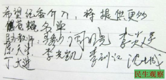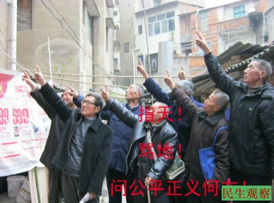 民生观察工作室2013-8-16消息:据网友“痴人话梅”发来信息称:昨天,湖北沙洋县沈集镇的八位七旬老人用实名举报当地官员“以权谋私”,严重侵害民办教师的合法权益。他们聚集在一起做“指天骂地”状,问天地正义何在?据悉,这八位老人都曾经是湖北沙洋县的民办教师,在国家对民师有转正政策的前后,当地官员安排自己家人亲戚顶替了民师指标转正,同时将这些老人以各种借口辞退。现在这八位老人老无所依,生活无着。