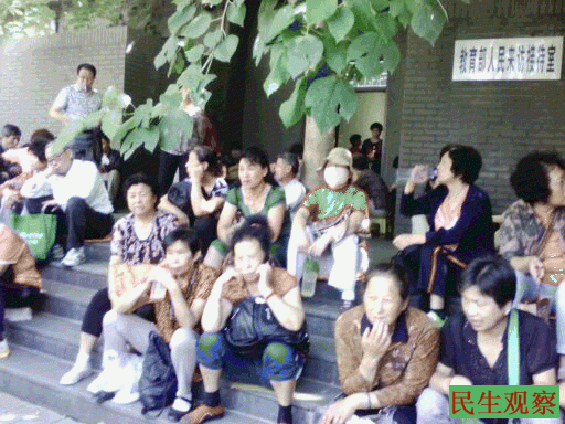 现场伊老师、袁老师向本工作室介绍,今天已成功到京的有河北、陕西、山东、江苏、浙江、吉林等多个省的民办代课教师代表。上午十点多教育部前已汇集了二、三百人,大家正坐在教育部信访办前等待接待,同时还在等其它老师过来。据悉,当时还有部分老师在国家信访局那边。