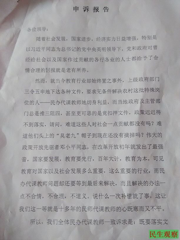 江西进贤县民师的申诉书 (责任编辑:民生编辑)