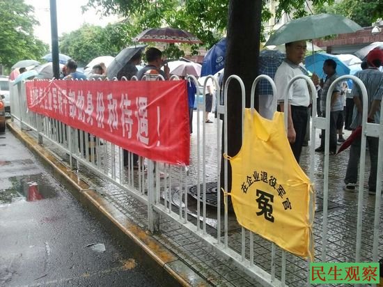 民生观察工作室2013-7-22消息:今天上午,陕西全省各地五百多名企业军转干部来到陕西省政府前集会请愿。