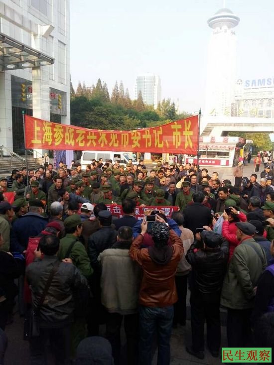 民生观察工作室2013-12-4消息:今天是全国法制宣传日,上海众多对越南参战退伍老兵上午就打着横幅集体到上海市政府信访办上访请愿。老兵们打出了许多条幅,还递交了请愿信,要求见市长、市委书记。