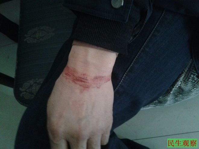 王志转轩的左手腕有血痕