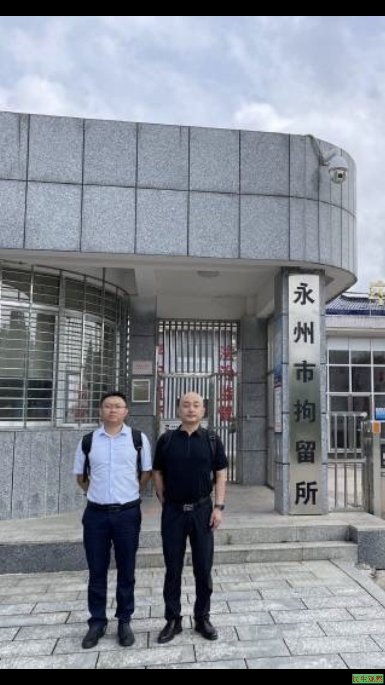 无奈之下,律师只能在拘留所门外烈阳暴晒下苦苦等待,值班民警却在办公室吹着空调对律师们不理不睬。等待的过程中,律师向拘留所门外公示的拘留所“社会志愿监督员”(冷水滩区办公室副主任张玉文、永州日报社副社长田人、永州市委党校教授邓大可)致电,请求监督并紧急维权。