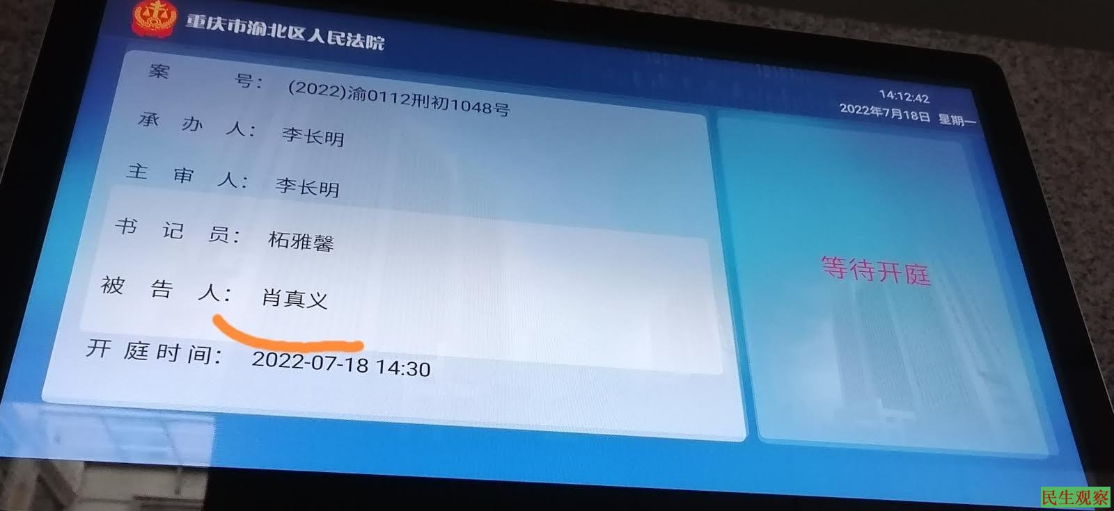 特别是后一次开庭,实际上是秘密开庭,法庭戒备森严,门口一反往常,沒有标示。问进出法庭的人,都回答不知道审的什么案子。