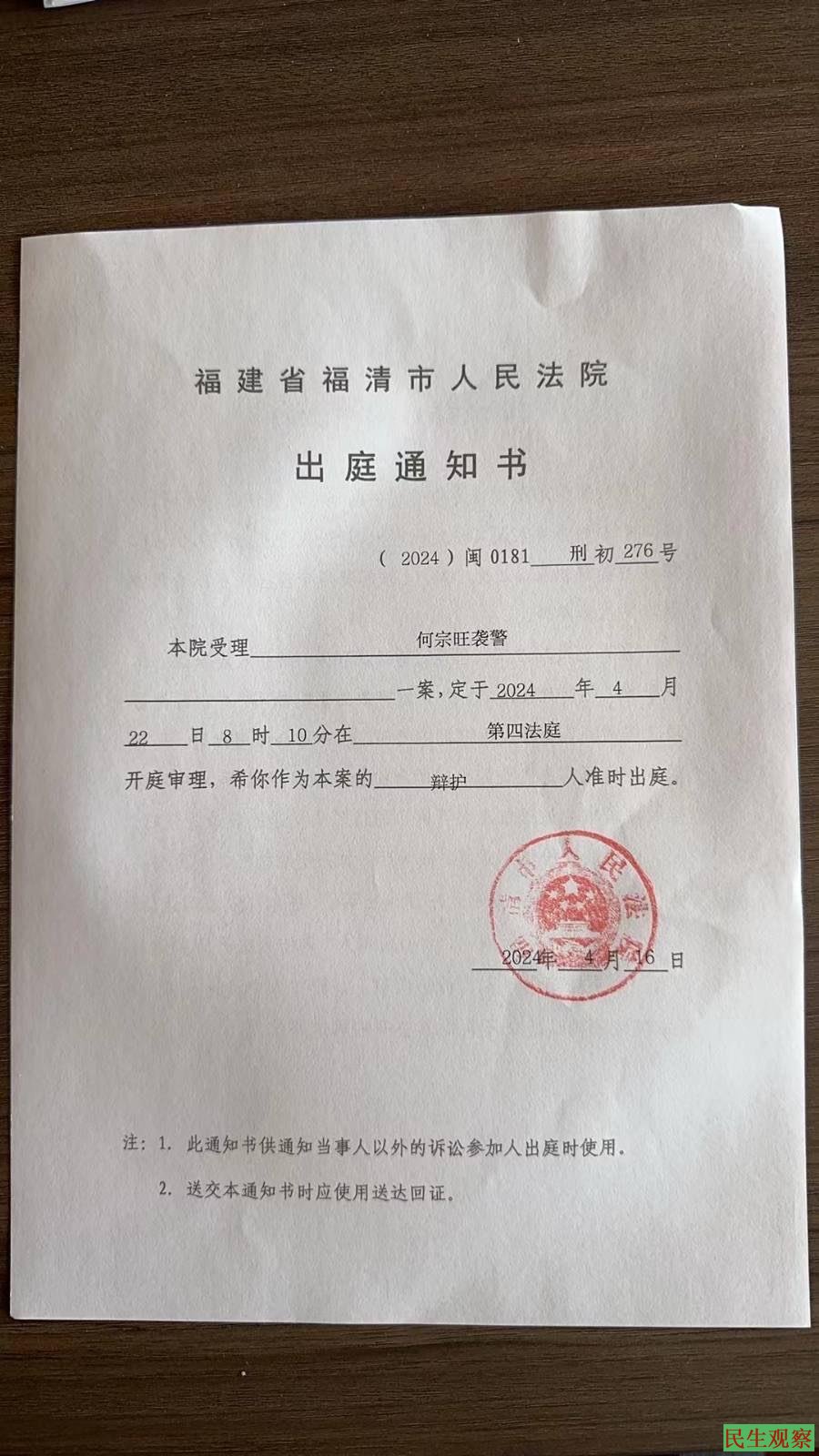 福建何宗旺“袭警”案将于22日再次开庭审理