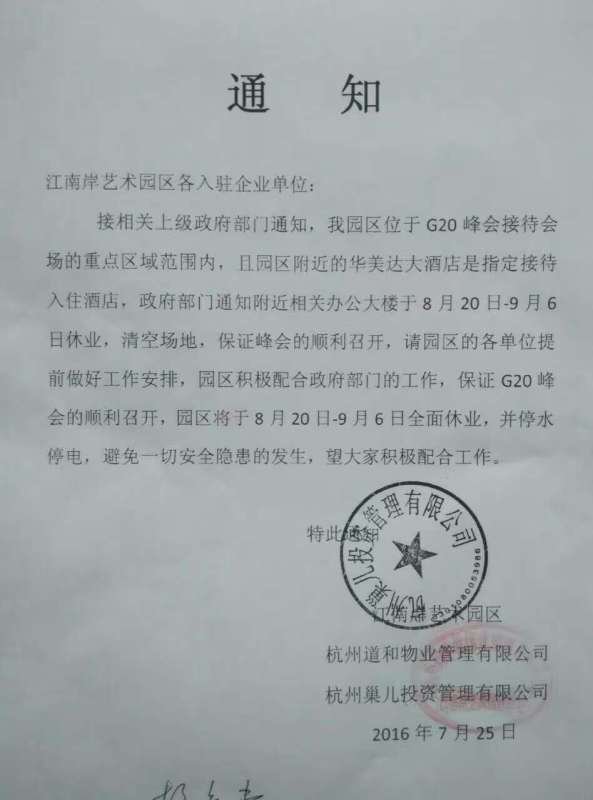 7.澎湃新闻2016年7月13日报道:因在G20杭州峰会维稳安保工作中履职不力,杭州淳安县4个部门的7名工作人员分别受行政警告、告诫等处理。