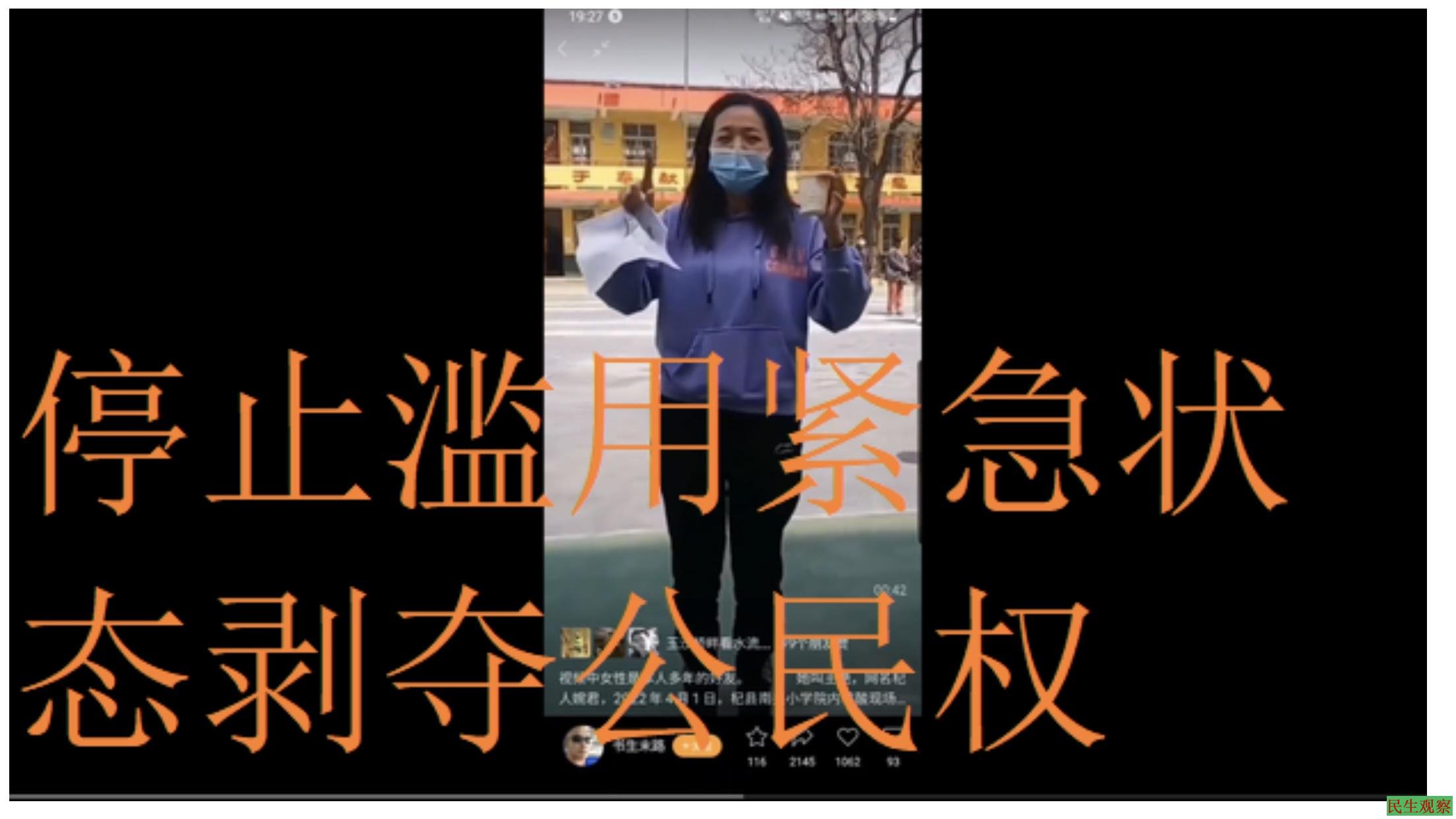 因此,民生观察特此严正要求河南杞县、湖南怀化及一切借防疫而肆意以“紧急状态”来治罪公民的执法部门,立刻纠正违宪行径,停止滥用“紧急状态”,释放王艳、武建国及所有被以“紧急状态”为由拘押的公民,切实维护宪法尊严,保障公民权利。