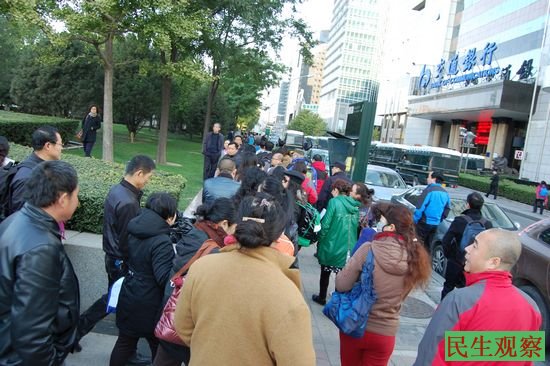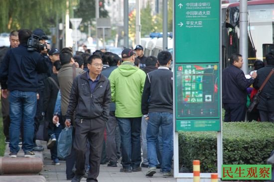 闻听这个消息,正在北京上访的建行、工行、中行、农行四大银行的买断下岗职工纷纷赶到建行总行前希望借此陈情申冤。据到现场的伍立娟向本工作室介绍,云集在建行前的四大银行下岗职工达近千人,但建行门口早已准备了很多警察与警车,包括儿童医院侧面都是很多警察与警车,公交车也有一、二十辆。下岗职工们一到这里,就被警察抓住拉上公交车。到上午十点,目击者就看到公交车已拉走了三、四车下岗职工了。