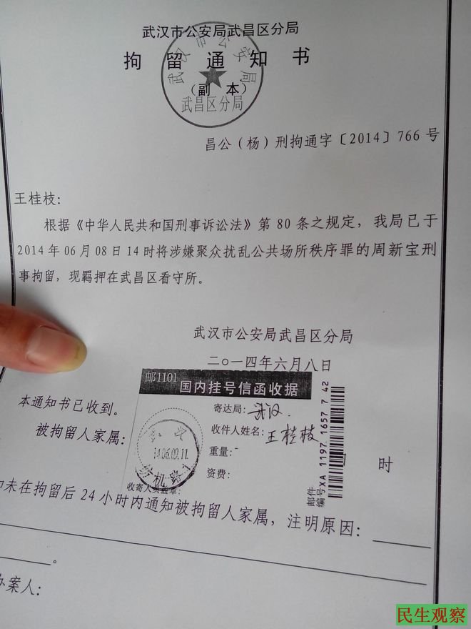 请立即释放被刑拘的武汉维权老者周新宝(附刑拘书)