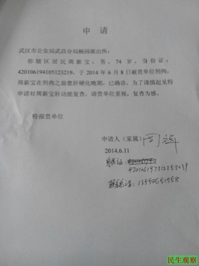 请立即释放被刑拘的武汉维权老者周新宝(附刑拘书) |