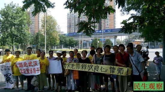 在京访民打横幅要求无罪释放良心律师