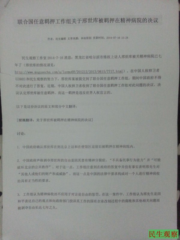 赵桂荣的通知书是沈阳当地维权人韩军等人到哈尔滨市公安局道外分局拿到的。据在北京的沈阳维权人林明洁介绍,赵桂荣近期是参加了一些维权声援活动,她还致信哈尔滨市公安局长要求信息公开。同时,赵桂荣丈夫邢世库被关精神病院的事,联合国人权理事会任意羁押关注组曾就此向中国政府发函,中国政府被迫就此进行了答复(联合国人权理事会任意拘留问题工作组关于邢世库的意见