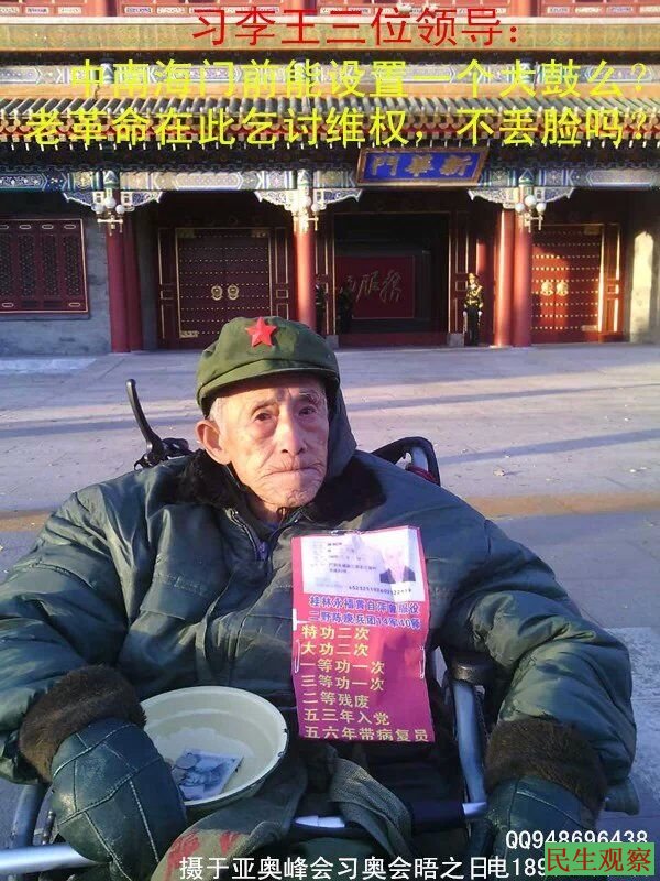民生观察工作室2015/11/6消息:本工作室2009年曾发布了广西桂林老功臣黄自萍北京上访的消息([组图]广西桂林八十四岁特等功臣黄自萍在京上访
