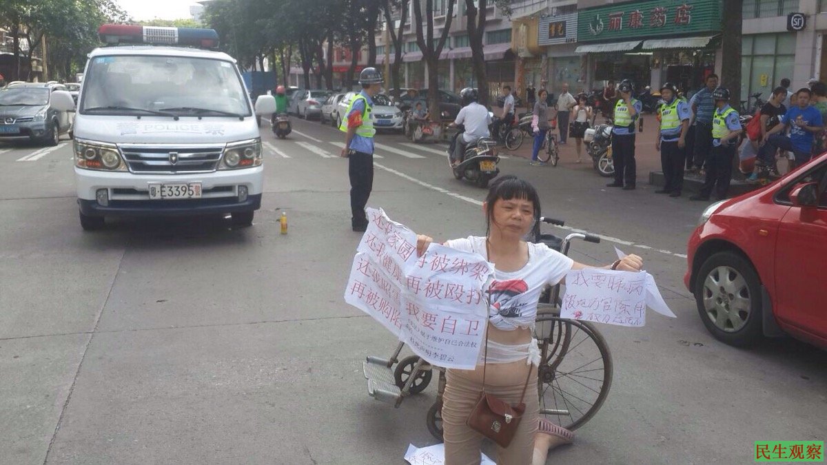李碧云还说,她因为长期坚持维权,遭到顺德当地维稳部门多次严重伤害,导致身体健康严重损害,需要经常到医院检查治疗。在此前的5月30日,李碧云针对自己4月21日围观苏昌兰案开庭被绑架事件在佛山中院进行实地报警被带到澜石派出所,在派出所内被一帮突然冲进来的不明身份人员殴打,导致肋骨受伤,李碧云说这是当地维稳部门看她身体有所好转故意对她进行伤害,还说这次看病受阻可能跟即将到来的敏感日有关。
