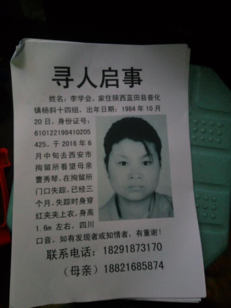 陕西省蓝田县李学会失踪一案 西安警方拒绝受理