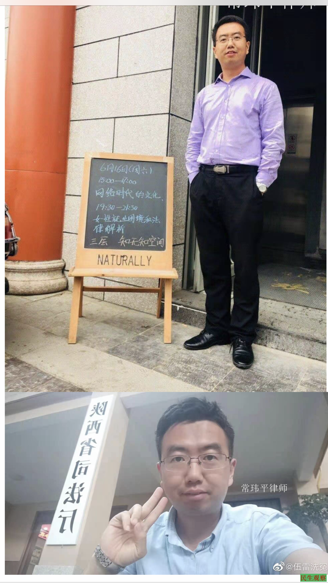 还有,常玮平的二姐和二姐夫也在上周被县教育局约谈了三次,常玮平的二姐夫妇因是该县教师,所以教育局也加入了对常家的稳控。常玮平的陈姓亲属反映,这两天常玮平的二姐夫被县教育局安排到玮平父母家24小时“上班”,负责对玮平父母的活动进行上报。而玮平的大姐夫一家也被威胁不得参与此事,否则影响他们儿子上大学考公务员。他大姐夫的手机也被非法收走。玮平的岳父也被收走手机,限制在家,由专人看守,出门需要打报告。常玮平的亲友全部受到不同程度骚扰,被警告禁止参与玮平的事。