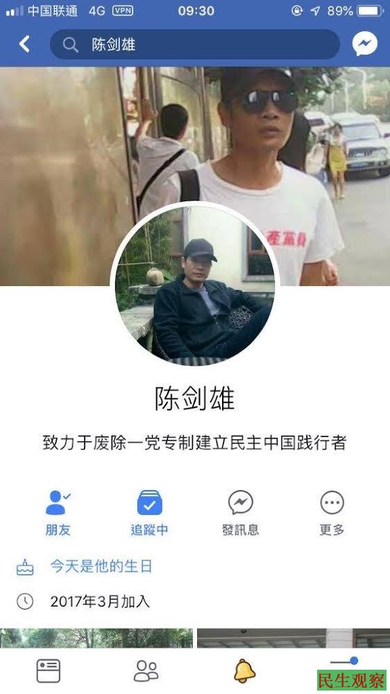 有朋友猜测,此次陈剑雄被带走,估计跟他最近转发关注广州异议人士王爱忠的案件有关。截止今天,陈剑雄被带走已经超过二十四小时了。
