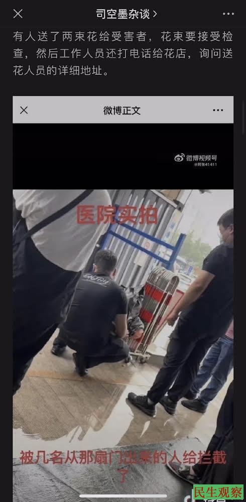 【民生观察2022年6月19日消息】唐山烧烤店女子被打事件,在极为严格的言论打压下,各种传言频频出现,网传送医院的女孩保住了性命,其他3个都死了。近日,央视记者前去采访汽车被砸,贵州《百姓关注》的记者前去采访被警察暴力对待暴力驱逐,北青报的记者发圈说凤凰网的一位编辑也遭到了同等待遇。据称,唐山目前进入紧张状态,出唐山站要求出站人员乘坐指定车辆合影,所有来唐山的人都被监控。
