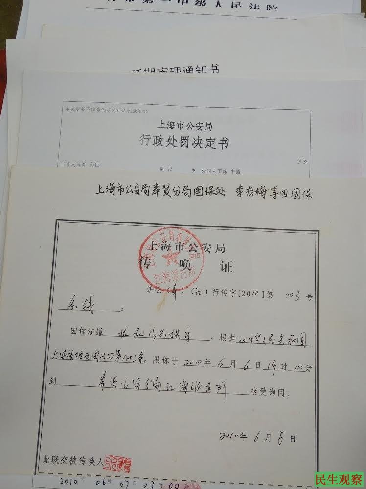 10月12日晚上大约九点,余钱在网上发出推文:“六四21周年,我禁食祈祷,还发了绝食短信,被上海市局国保总队非法监听到,带着分局国保处一起找了两天才把我抓到。国保局带着贴有“绝密”的电脑给我办案,完事后把我扔给派出所处罚。我不服,通过依法复议获得“平反”,撤销了行政处罚。最后决定继续上法院状告政府:六四发声无罪,监听公民通信才有罪。”