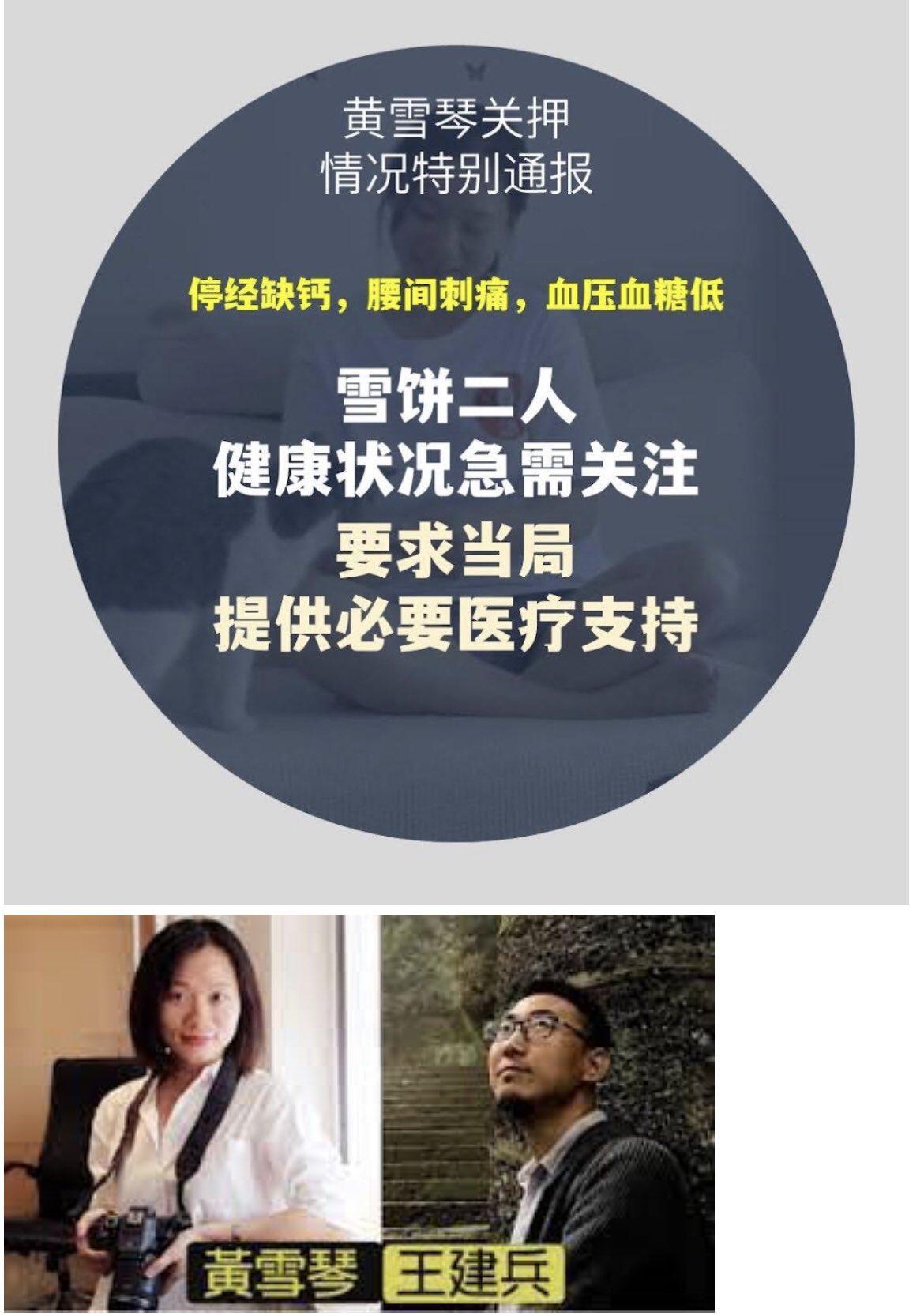 3、无罪释放黄雪琴和王建兵。“雪饼案”拖延500多天未开庭,这一无中生有的政治冤案,违背程序正义和宪法保障,当局必须立即释放两人。