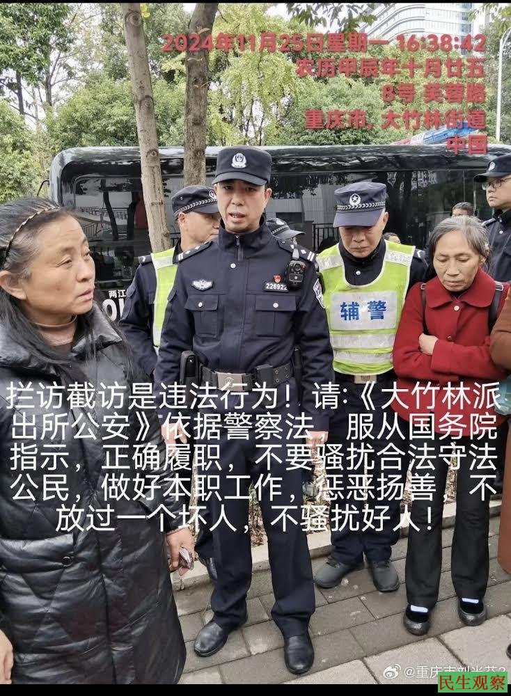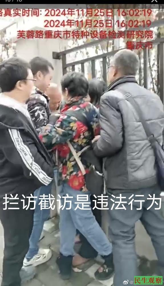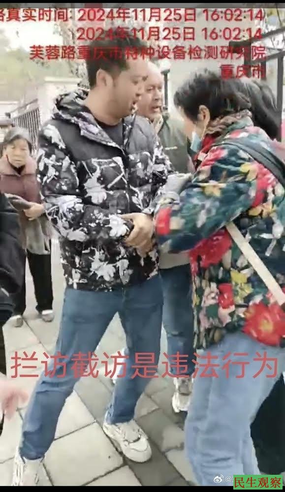 【民生观察2024年11月26日消息】近日,重庆巴南区视力残疾人赵维智,在重庆渝北区芙蓉路人行道附近,遭重庆巴南区工作人员暴力截访打伤。在此过程中,重庆涪陵区维权人士陈桂芳上前进行劝解,却遭到巴南区工作人员的拳打脚踢。报警后双方被带往大竹林派出所做询问笔录。