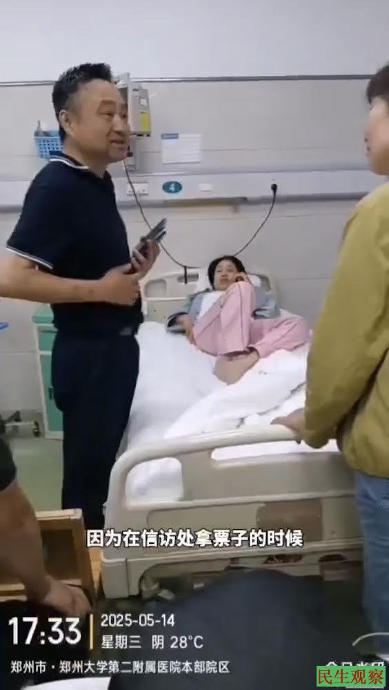 【民生观察2025年5月15日消息】近日,河南村镇银行储户汤敏飞前往郑州,欲向中央巡视组反映存款被非法冻结的问题,遭到十几个不明身份人员抢夺手机,导致汤敏飞受到惊吓后病发入院治疗。目前汤敏飞在医院住院治疗当中,病房门口仍有不明人员对其进行蹲守盯梢。