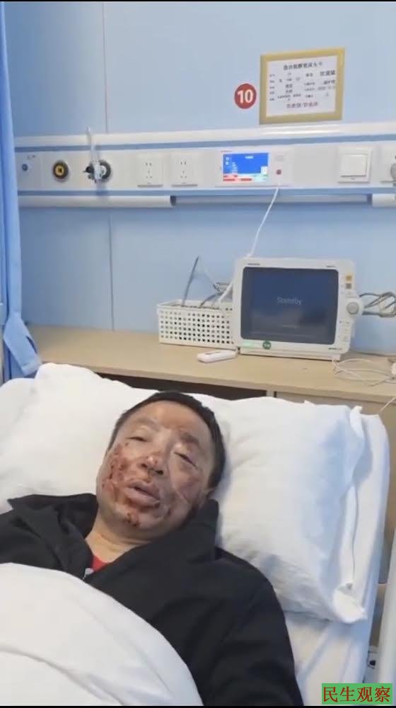 【民生观察2025年10月31日消息】近日,维权人士沈爱斌在无锡市锡山区东亭派出所大厅内,遭该所副所长戴沣指使众人殴打沈爱斌致其受伤,并抢夺其随身财物。沈爱斌一度处于昏迷状态,随后被紧急送往无锡市江南大学附属医院进行抢救,经诊断确诊沈爱斌鼻梁骨折变形,目前仍在医院治疗当中。10月30日下午,又传出消息指沈爱斌的家被警方查抄。