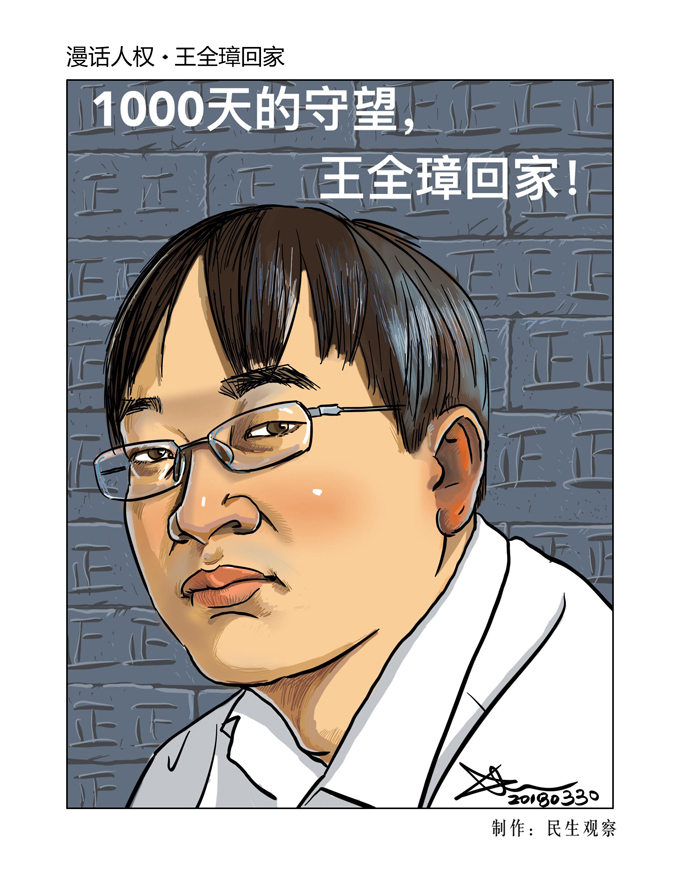 编按:王全璋律师在2015年“709大抓捕”中于8月5日被带走,2017年2月14日被天津市检察院以涉嫌“颠覆国家政权罪”正式起诉,但他的家属和代理律师至今无法会见。2018年4月5日,是王全璋律师下落不明的第1000天,民生观察呼吁立即释放王全璋,让他回家!