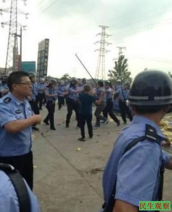 上图为:安徽 强拆逼死农妇千人抢尸战特警现场照片