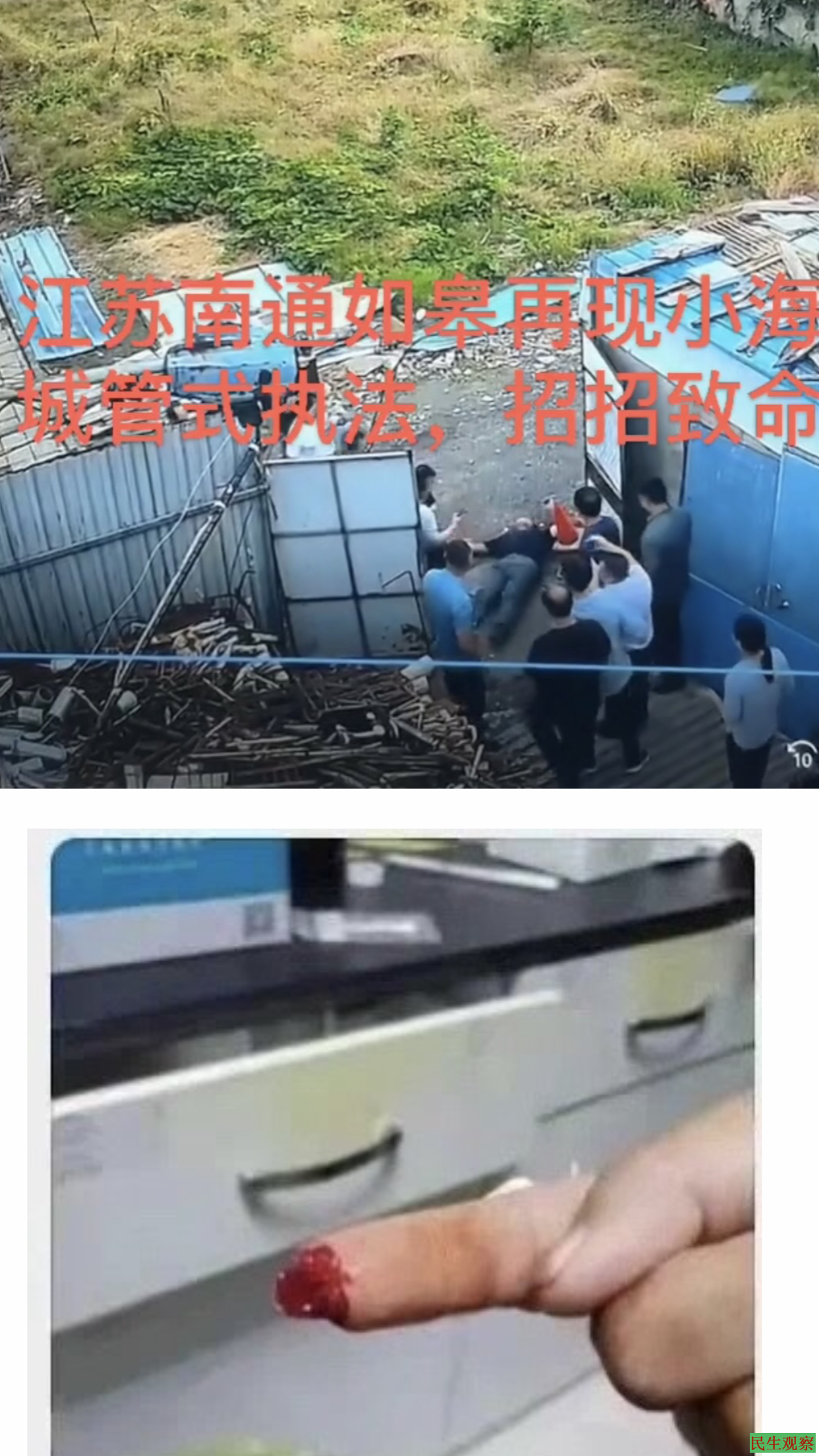 【民生观察2021年10月11日消息】近日,江苏南通再度惊现小海城管式对老人施暴逼签,招招夺命!如皋公安:他们在执法!医院方面:干部打过招呼了,不能安排你们住院。