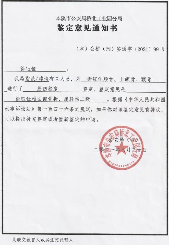 2020年中级人民法院撤销平山区人民法院刑事判决发回重审。同年11月平山区检察院下达不起诉决定书,丁长有的女婿徐钰佳已鉴定轻伤二级。