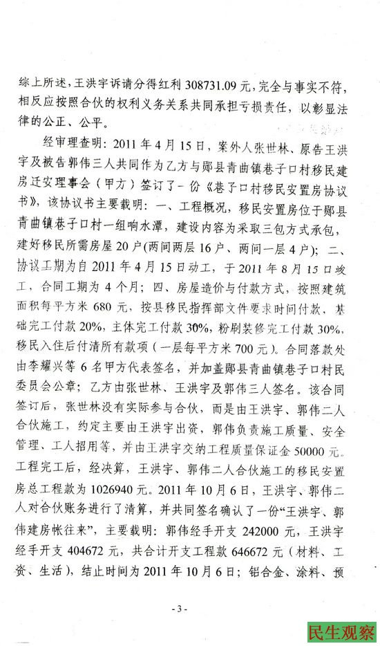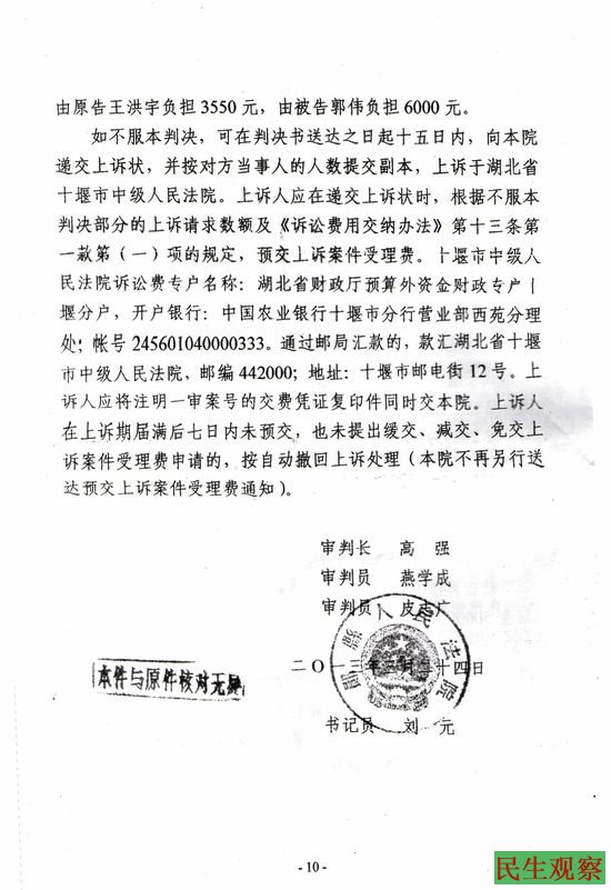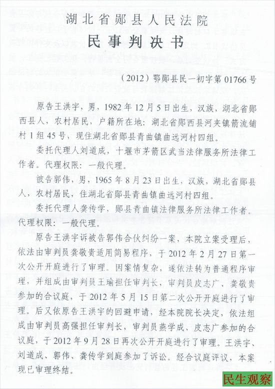 湖北省郧县王洪宇的民事判决书