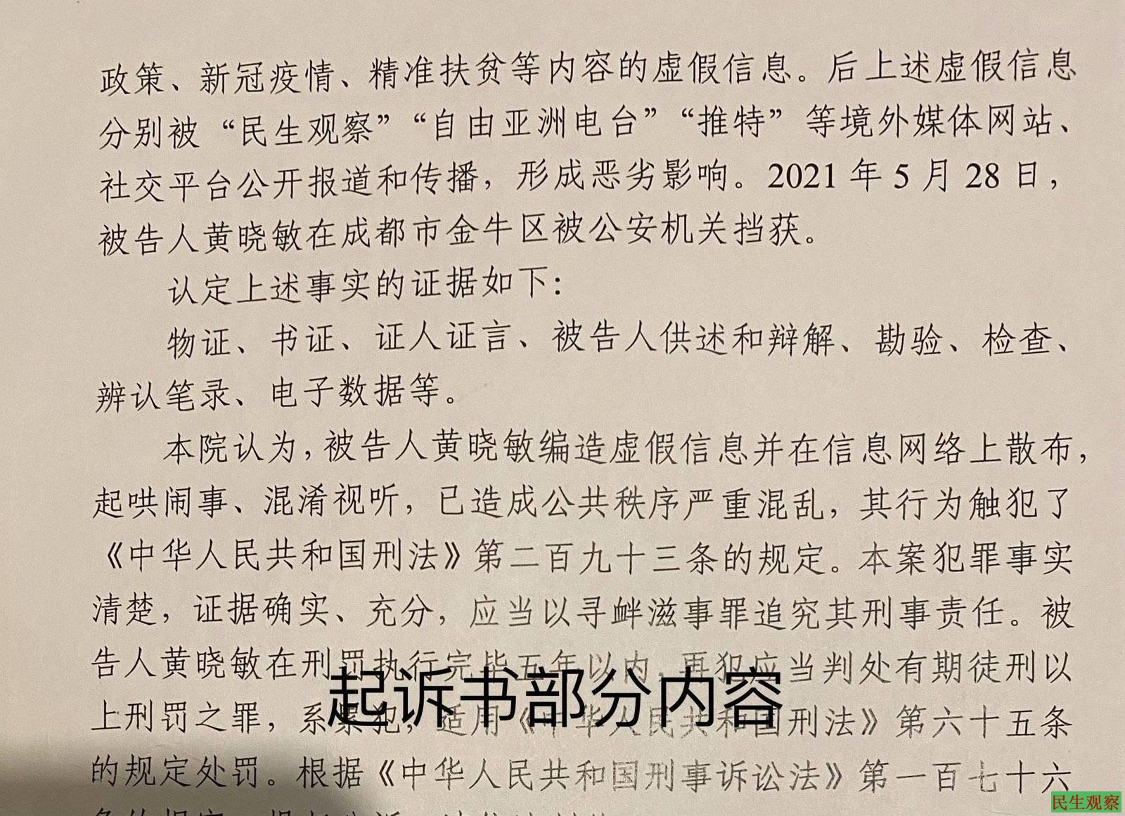 黄晓敏在锦江监狱写给成都金牛检察院的申诉信