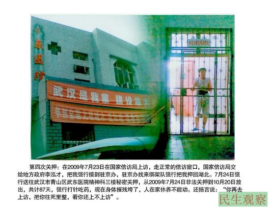 为了阻止黄翠华的上访,当地政府部门把她四次投入精神病院!