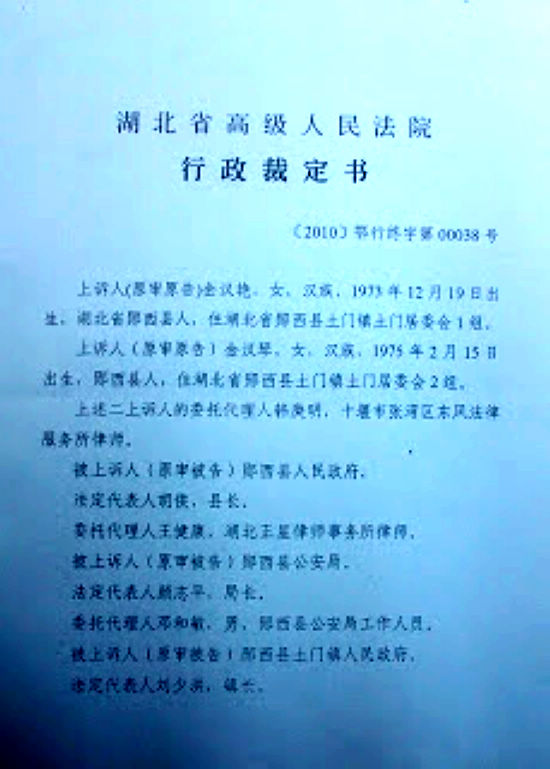 7月1日,记者接到十堰访民、被精神病受害者金汉琴的电话,她说现在当地土门镇政府镇长李飞威胁她不要再到北京上访,如不配合政府的工作即使不当官也会收拾她们姐妹俩,并且针对其住院费、医药费、生活费等问题,口头承诺要到6个月后再谈。